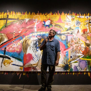 James Drinkwater is a poet, singer, song-writer, musician, epicure, traveller, set and costume designer, draughtsman, printmaker, ceramicist, sculptor and a consummate painter. He grew up in Newcastle and studied at the National Art School in Sydney. This four-time Wynne Prize finalist, winner of the Marten Bequest Travelling Scholarship and the Brett Whiteley Travelling Scholarship has been dubbed as ‘one of the most exciting contemporary artists creating work in Australia today.’ Travelling has always been an important aspect of his life and work. He has lived and made art in Melbourne, rural Italy, France, the UK, Germany, Kenya, French Polynesia, Indonesia and the US. Curated by Ken McGregor, ‘Passage’ marks the first time Drinkwater’s work is being exhibited in the Northern Territory. The show includes pictures from his time in Paris and Tahiti as well as works on paper from a 2015 painting trip to the Central Desert. Some of these works have never been exhibited anywhere. In 2023, NCCA invited Drinkwater to visit the Top End. The residency continued the decades-long tradition of hospitality the Centre has offered visiting artists to establish a temporary camp in the surrounding area. The exhibition and the large eponymous triptych-installation is the result of this recent trip.